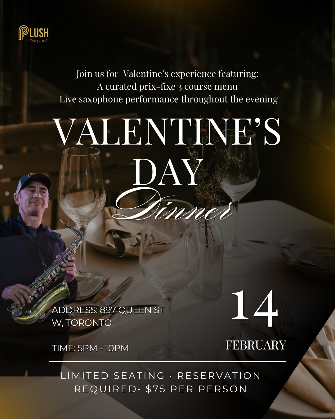 Join us for a valentine"s day Dinner Candle-Lit, Live Saxophonist, Prix-Fixe valentine"s Menu An intimate Dinning experience February 14th 5pm to 10pm. Limited seating- Reservations required. Tickets are available now.